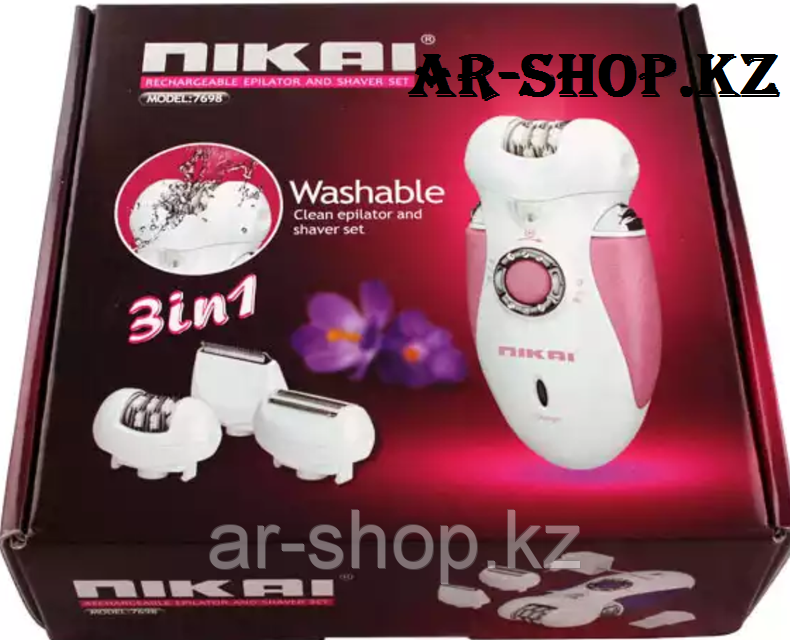 Эпилятор 3 в 1 Nikai-7698 - отличный способ избавиться от нежелательных волос на несколько недель. Вы с максимальным комфортом сможете самостоятельно провести депиляцию ног, области бикини, подмышек, переносицы, щек, области верхней губы. Домашний эпилятор удаляет волоски на корневом уровне, обеспечивает максимальный контакт с кожей. Благодаря этому захватывается больше волосков за один раз.