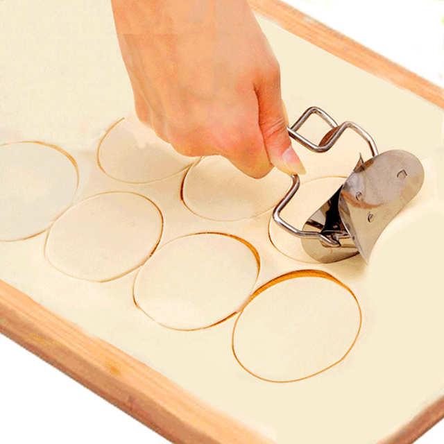 В чем отличительные особенности данной модели ролика для вырезания теста? Это прежде всего сама конструкция, которая позволяет катить ролик по тесту и быстро нарезать кружки диаметром 7 см. Надежность конструкции, ролик изготовлен из металла. Нарезка кружков для пельменей и други изделий происходит быстро, практически без усилий.Раскатать тонко тесто при помощи скалки. Затем взяв ролик в руки прижать его к краю полотна теста и катить, слегка нажимая на него, чтобы острые края пресса ролика нарезали кружки. Кружочки для формирования пельменей готовы, теперь осталось положить фарш и плотно склеить края теста.